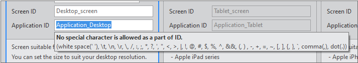 3 | Application ID | ID of an application. The ID of a created screen will be the value of the screenid property of the corresponding application. |