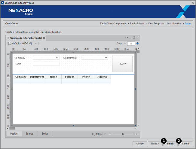 Select the [Use 'QuickCode' > Start Tutorial] item in the QuickCode step and then click the [Finish] button to run the QuickCode Tutorial Wizard.