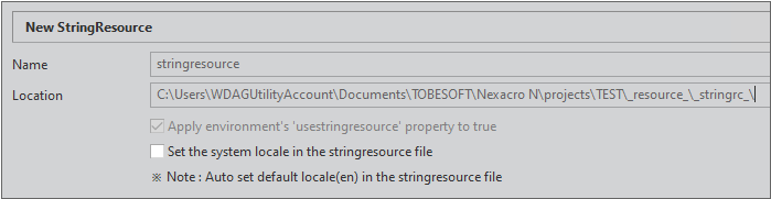 If the "Set the system locale in the stringresource file" option checked off, the language set in the system locale will be added as the locale item. If this option is not checked off, only the default language, English (en), will be set as the locale item. Locale items may be added or deleted after the StringResource file is created.