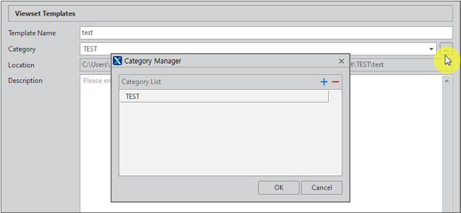 Category can be added or changed if necessary. If Category is not selected, then the ViewSet template is displayed directly under the Viewset Templates item. If you have many ViewSet templates that you use, then it is recommended to create Category to manage.