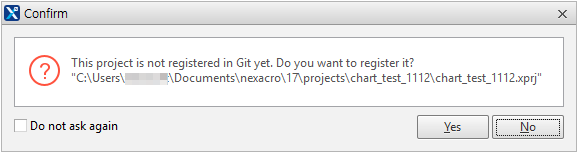If you open a project that is not registered in your local repository, Nexacro Studio will ask you whether to add the project to the local repository. If you click Yes, the project will be added. Even if you click No, you can add the project later by selecting the menu [Git > Init New Repository].
