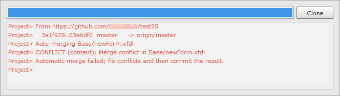 This pane shows the results of Git performing tasks. If an error occurs during operation, the relevant message will be displayed in color.