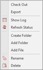 Delete | Change the status of a file to "deleted". You can delete the relevant file in the repository by performing the Commit command. The actual file stored in your PC will not be deleted. | |