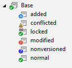 Since directories do not have their status values in Git, an icon for a directory is determined by the priorities among the statuses of children. In the above picture, the FrameBase Directory presents the Conflicted icon, resulting from the priority rules applied among the child Forms. The order of priority for status icons is presented below.