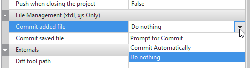Push when closing the project | With a remote repository connected, this option determines whether to push your changes to the remote server as soon as the project is closed. (Pull -> Push) |