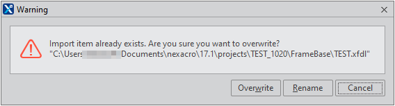 You can select and import the xfdl file from the file explorer using drag and drop. If you select a file from the file explorer and drag and drop it to the Nexacro Studio area, then the following message will be displayed.