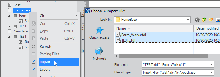 Services or items that support import can select Import from the context menu. You can select individual files to import or select the xpackage file to run the Import Wizard. Individual files can be imported by selecting multiple files.