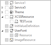 Information, such as service files, templates, and snippets, in the project can be grouped and exported as a single file. The exported item is created as the file with the xpackage extension and can be imported when executing Import.