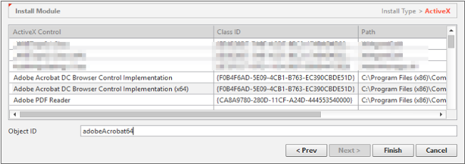 Select an ActiveX control you want to install and then enter the object ID, which will be registered as the ClassName of the component.