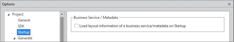 1 | Load layout information of a business service/metadata on Startup | Determines whether to load business services and metadata and to show them on the Project Explorer when Nexacro Studio begins. |