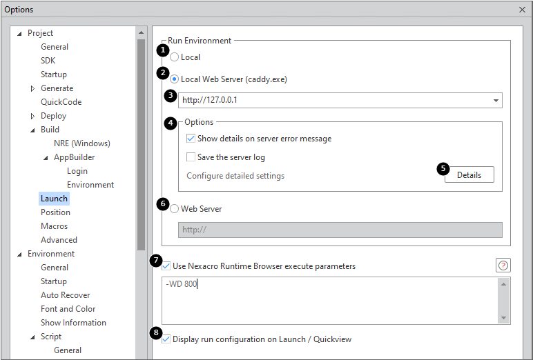 Option used when launching a Nexacro Studio project.