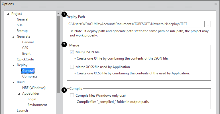 1 | Deploy Path | Designates the output path used in the Deploy menu. |