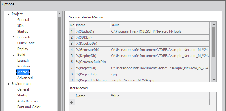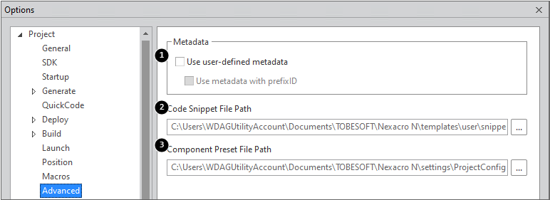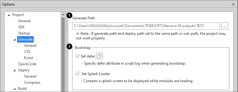 1 | Generate Path | Specifies the path for saving the files that are produced as the result of building a project. If the Generate path is equal to or located under the Deploy path, the project may not work properly. |
