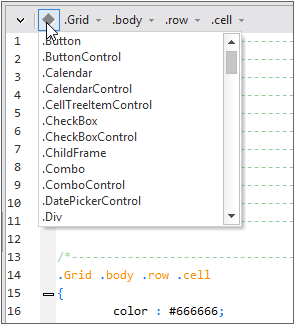 CSS 편집기는 선택자 목록을 트리 형태로 제공합니다.