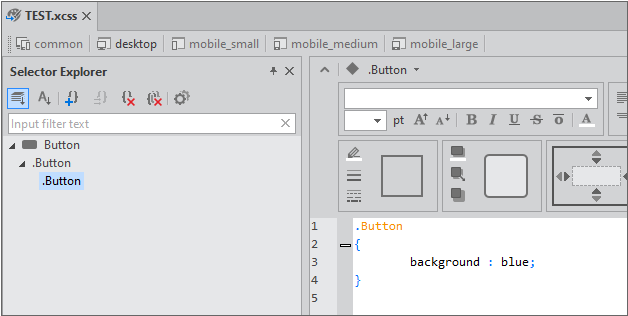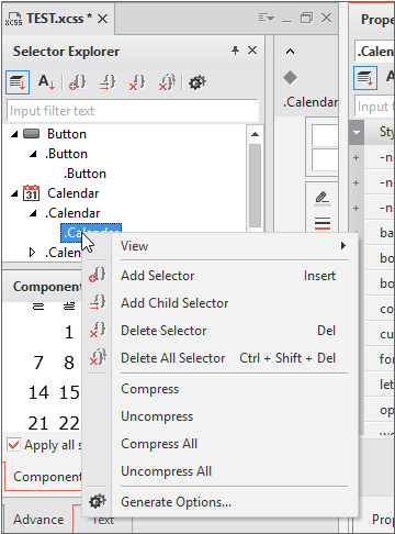 XCSS 편집기는 Project Explorer에서 xcss 파일을 선택하거나 Resource Explorer에서 xcss 파일을 선택한 후 더블클릭하거나 파일 선택 후 컨텍스트 메뉴에서 [Edit]를 선택하여 편집할 수 있습니다.
