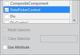 Components 목록에서 Control 항목 선택 시에는 Class Selector를 추가할 수 없습니다.