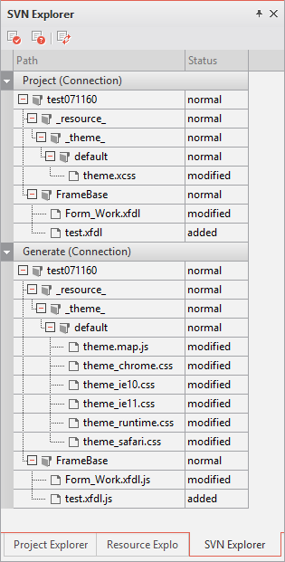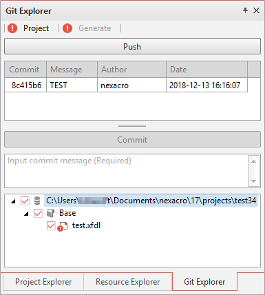 Project 영역의 Git Explorer에서 수행하는 동작은 Menu에서 수행하는 것과 마찬가지로 Generate 경로의 항목과 연계되어(Commit 수행 시 Generate 항목도 Commit 수행) 처리합니다. 하지만 Project 영역과 Generate 영역의 항목들의 상태가 달라서 연계로 처리할 수 없을 경우 Generate 영역의 Explorer에서 Generate 영역의 항목들을 제어할 수 있습니다. Generate Explorer는 Project 영역의 항목들과 연계되어 처리되지 않습니다.