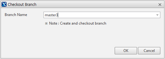 메뉴 [Git > Checkout Branch]를 선택하면 브랜치를 변경하거나 새로운 브랜치를 생성할 수 있습니다.