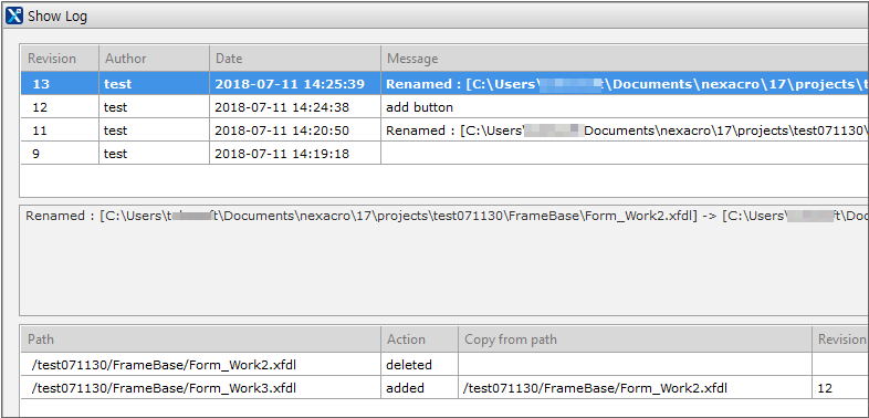 이름을 변경하더라도 메뉴 [SVN > Show Log]에서 이전 변경 이력을 모두 확인할 수 있습니다.