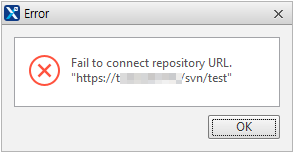 옵션에서 Project Repository, Generate Repository 항목에 저장소 정보와 계정 정보를 정상적으로 설정하고 저장할 때 저장소에 접근해 인증을 처리합니다. 정상적으로 인증된 경우에는 별도의 메시지를 출력하지 않으며 인증이 실패한 경우에는 아래와 같이 메시지를 표시합니다.