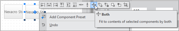 minwidth, minheight, maxwidth, maxheight, fittocontents 속성은 앱 실행 시 반영되는 속성입니다. 넥사크로 스튜디오 디자인 모드에서 해당 속성값에 따라 컴포넌트의 크기를 변경하려면 컴포넌트를 선택하고 메뉴[Design > Fit to Contents] 또는 툴바나 컨텍스트 메뉴에서 [Fit to Contents] 항목을 선택합니다.