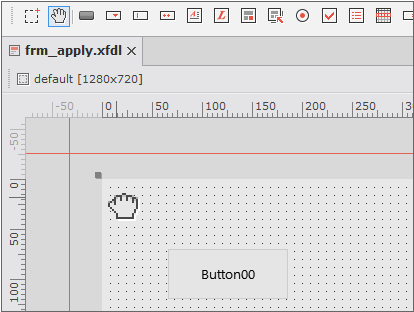 Component 툴바에서 [Move] 항목을 선택하면 Form의 기준 좌표를 이동할 수 있습니다. 예를 들어 Form 바깥 영역에 있는 컴포넌트를 표현하고자 한다면 [Move] 아이콘을 선택해 Form의 기준 좌표를 이동하고 원하는 위치에 컴포넌트를 배치할 수 있습니다. 기준 좌표를 이동하면 눈금자도 마이너스 좌표계를 표시합니다.