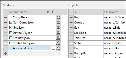 앱에서 접근성 속성을 활성화하기 위해서는 Environment 속성 중에서 enableaccessibility 속성값을 true로 설정해주고 TypeDefinition 모듈 항목에 Accessibility.json 파일을 추가해주어야 합니다. enableaccessibility 속성값만 true로 지정한 상태에서 앱을 실행하면 Accessibility.json 파일을 추가해주어야 한다는 경고 메시지를 표시하고 접근성 속성이 활성화되지 않습니다.