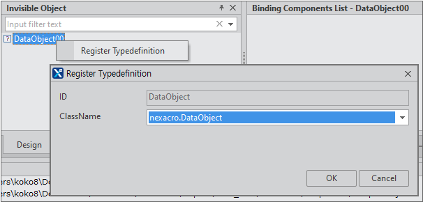 TypeDefinition에 등록되지 않은 컴포넌트를 마우스 오른쪽 버튼으로 클릭하면 Register TypeDefinition이라는 팝업 메뉴가 나타납니다. 해당 항목을 선택하고 나타나는 팝업창에서 ClassName을 선택하면 TypeDefinition 등록이 처리됩니다.
