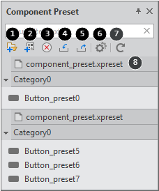 7 | Refresh | 외부에서 컴포넌트 프리셋 파일 변경 시 변경된 내용으로 새로 고침합니다. |