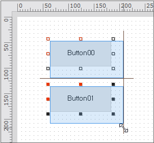 마우스를 사용하지 않고 Shift키를 누른 상태에서 키보드의 방향키를 사용해 컴포넌트의 크기를 변경할 수 있습니다. 이때 방향키 입력 시 변경되는 크기는 메뉴 [Options > Form Design > Guide]에서 지정한 Dot Grid Size 값에 따라 처리합니다.