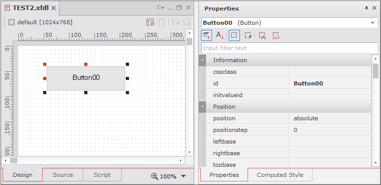 임의의 Form에서 프리셋으로 등록할 컴포넌트의 속성을 설정합니다.
