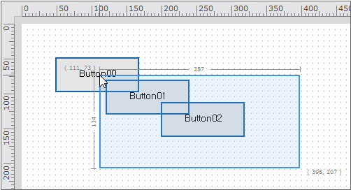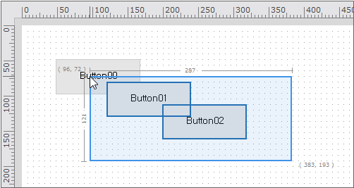 Form 디자인 시 빈 곳에 마우스로 드래그하게 되면 러버밴드(Rubber Band)가 사각형으로 표시되며, 사각형의 시작과 끝 포인터 위치 및 너비와 높이 정보를 표시하여 생성될 컴포넌트의 크기를 조절할 때 사용자가 미리 가늠할 수 있도록 도와줍니다.