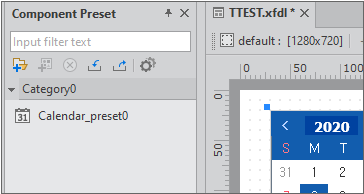 Component Preset 패널이 표시되고 기본 카테고리에 프리셋이 등록됩니다.