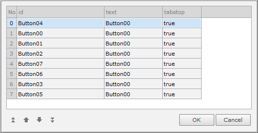 Tab Order 외 목록에 보이는 정보(id, text, tabstop)는 Tab Order List 창에서 수정할 수 없습니다.