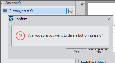 Component Preset 패널에서 프리셋 또는 카테고리를 선택하고 [Delete]키를 누르거나 툴바에서 [delete]를 선택하면 해당 프리셋, 카테고리를 삭제합니다.