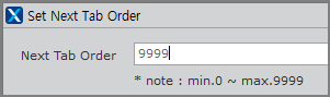 Set Next Tab Order | Next Tab Order 값을 직접 지정합니다. | |
