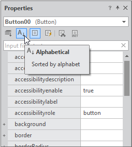 선택된 오브젝트의 속성이나 이벤트를 이름순으로 정렬하여 편집합니다.