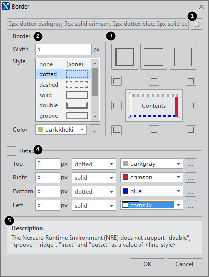 4 | Detail | 하위 Border 속성값을 설정합니다. 해당 항목은 접거나 펼칠 수 있습니다. |
