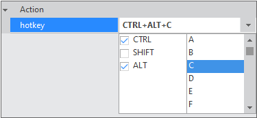 컴포넌트의 hotkey 속성값 편집 시 조합할 수 있는 키를 선택할 수 있는 편집창을 지원합니다.