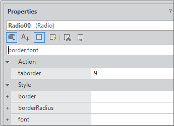 border 속성을 가지는 컴포넌트는 Border Editor를 사용해 하위 항목을 편집할 수 있습니다. 속성창에서 border 항목 오른쪽에 있는 버튼을 클릭합니다.