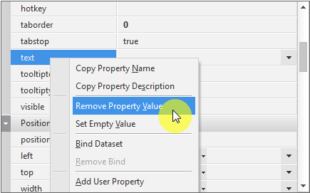 컴포넌트 속성 중 기본값을 가지거나 boolean 값처럼 확정된 속성값이 있는 경우에는 컨텍스트 메뉴에서 Remove Propeory Value, Set Empty Value 항목이 비활성화됩니다.