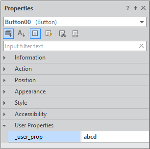 추가된 Property는 "User Properties" 카테고리에 추가됩니다.