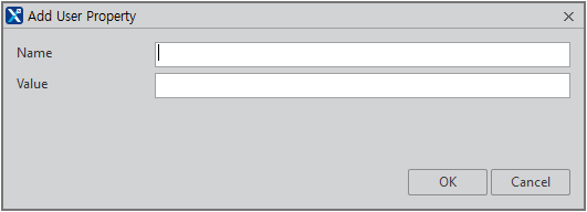 User Property 입력창은 String 형태의 "Name"과 "Value" 값을 입력받습니다.