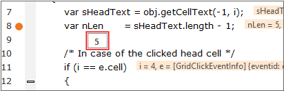 Inline Assist Variable은 스크립트 편집기에서 함수의 선언부부터 현재 적중된 중단점 사이에 존재하는 모든 오브젝트와 변수의 값을 각 라인의 옆에 표시해 주는 기능입니다.