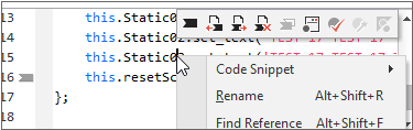 소스, 스크립트, XCSS 편집창이 열린 상태에서 북마크를 추가할 위치에 커서를 위치하고 오른쪽 마우스를 클릭하면 북마크 미니 툴바가 나타납니다. [Toggle Bookmark]를 선택해 해당 위치에 북마크를 설정하거나 삭제할 수 있습니다. 툴바나 북마크창을 이용할 수도 있습니다.