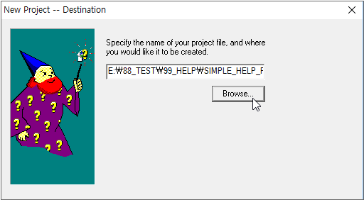 Options 창에서 Title 항목을 입력하고 Default file 항목에 Help.htm 파일을 입력합니다.
