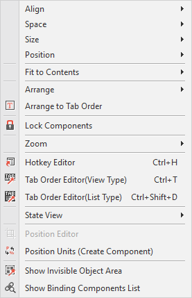 Position Left | 선택된 Component들을 Form Canvas의 Left로 이동 | |