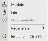 Emulate | 선택한 오브젝트를 에뮬레이터에서 실행합니다. | |
