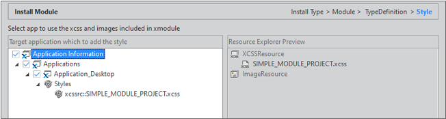 The steps to install the module are the same until the step of selecting the composite component. In the corresponding step, click the [Next] button and select the App to apply Style.