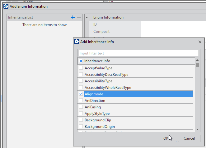 Click the [+] button in the Add Enum Information window and select an existing item.